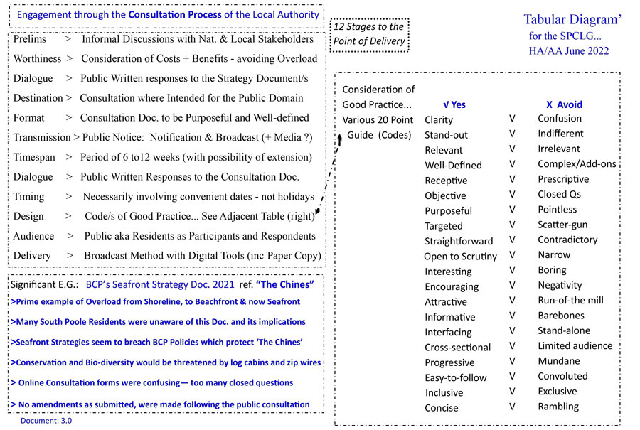 The document is to follow good practice of consultation. The documents below, as prepared by the SPCLG (Consultation task group), are to be incorporated into the 1st draft to be produced by BCP directors/ officers. SPCLG will then review this draft document for further additions/amendments.
